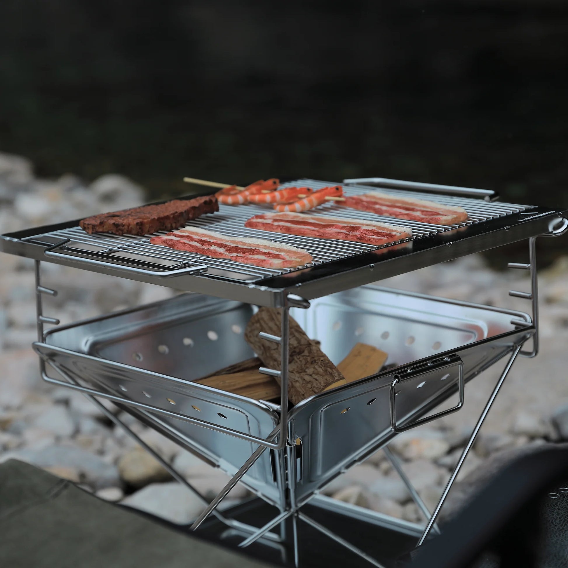 CAMPINGMOON 3-in-1 Portable Stainless Steel Wood Burning Grill and Fire Pit with Carrying Bag