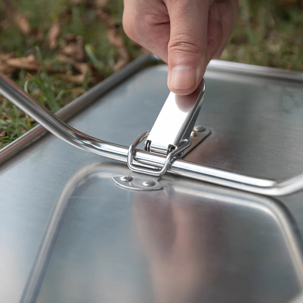Bring the whole crew together around this large foldable camping grill and fire pit, perfectly sized for 4–5 people. Whether you’re grilling at the beach, camping in the woods, or setting up outside the RV, this sturdy stainless steel pit makes outdoor cooking simple and fun.