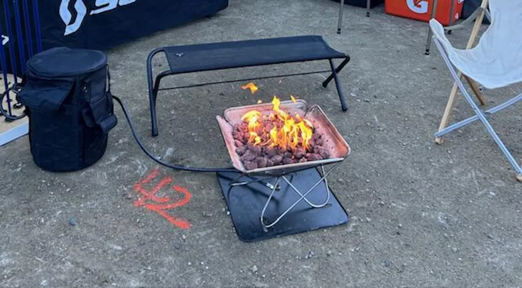 Such a simple and easy design. Set up is easy, even with cold fingers. Had it go for two pretty long days of(6-7 hrs each)of use on one 20lb tank. Packs up neatly. This along with Takibi is so much easier to transport to backyards, campsites, picnics etc than big drum style fire pits.